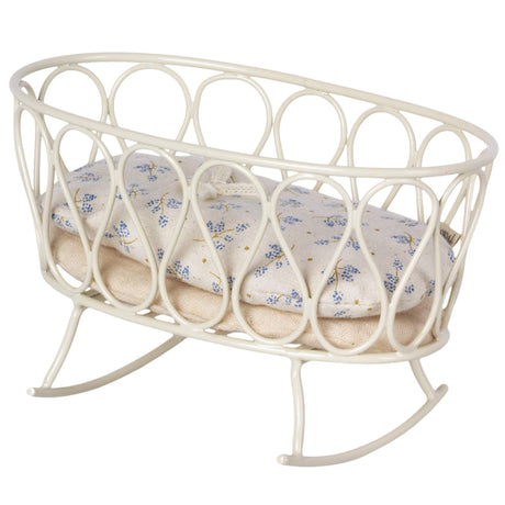 Maileg Metal Doll Rocking Cradle with Sleeping Bag, Blue