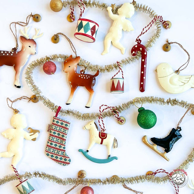 Decorate your home and Christmas tree with Maileg These beautiful metal ornaments are hand painted on both sides and come with a glittery gold string for hanging. Enjoy mixing and matching all of the different Maileg ornaments to create a personal collection. For decoration only.